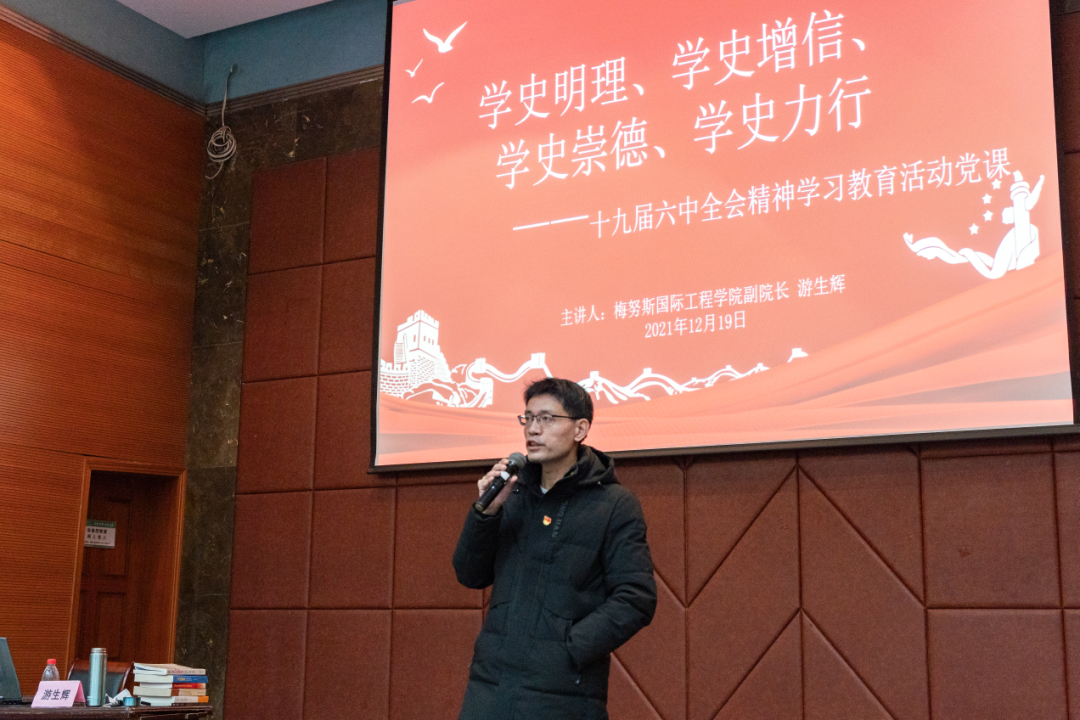 游生辉院长围绕着“中国共产党人的初心和使命”、“十九届六中全会通过的《中共中央关于党的百年奋斗重大成绩和历史经验的决议》的意义”以及“创办*黑料网