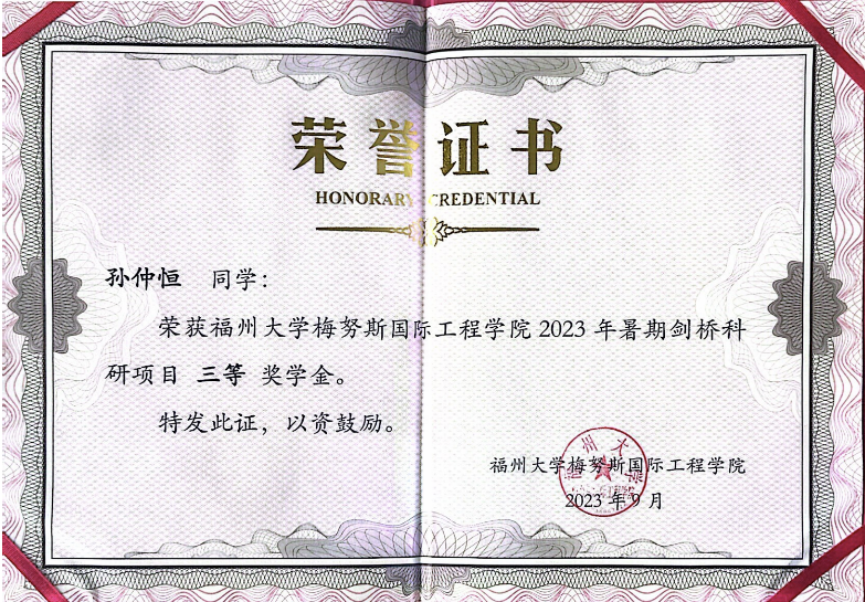 本科阶段,孙仲恒对自己要求严格,前五学期绩点3.91/4,专业排名1/85,本科期间大多数专业课达到满绩(4.0)水平,曾多次获得黑料网