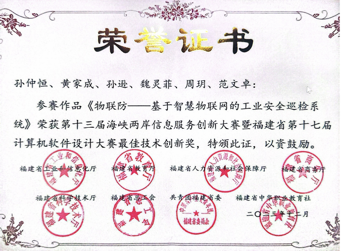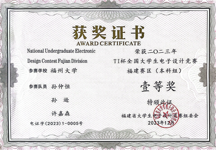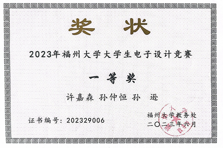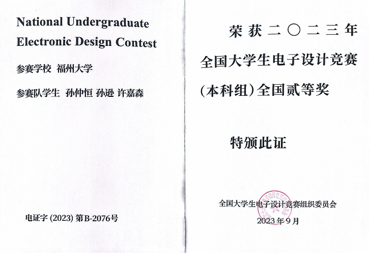本科阶段,他积极参与各类竞赛,以锲而不舍的精神投入其中,并获得了众多奖项,如全国大学生电子设计竞赛全国二等奖,全国大学生互联网+竞赛全国铜奖,第十三届海峡两岸信息服务创新大赛暨福建省第十七届计算机软件设计大赛一等奖兼特等奖(最佳技术创新奖)等。