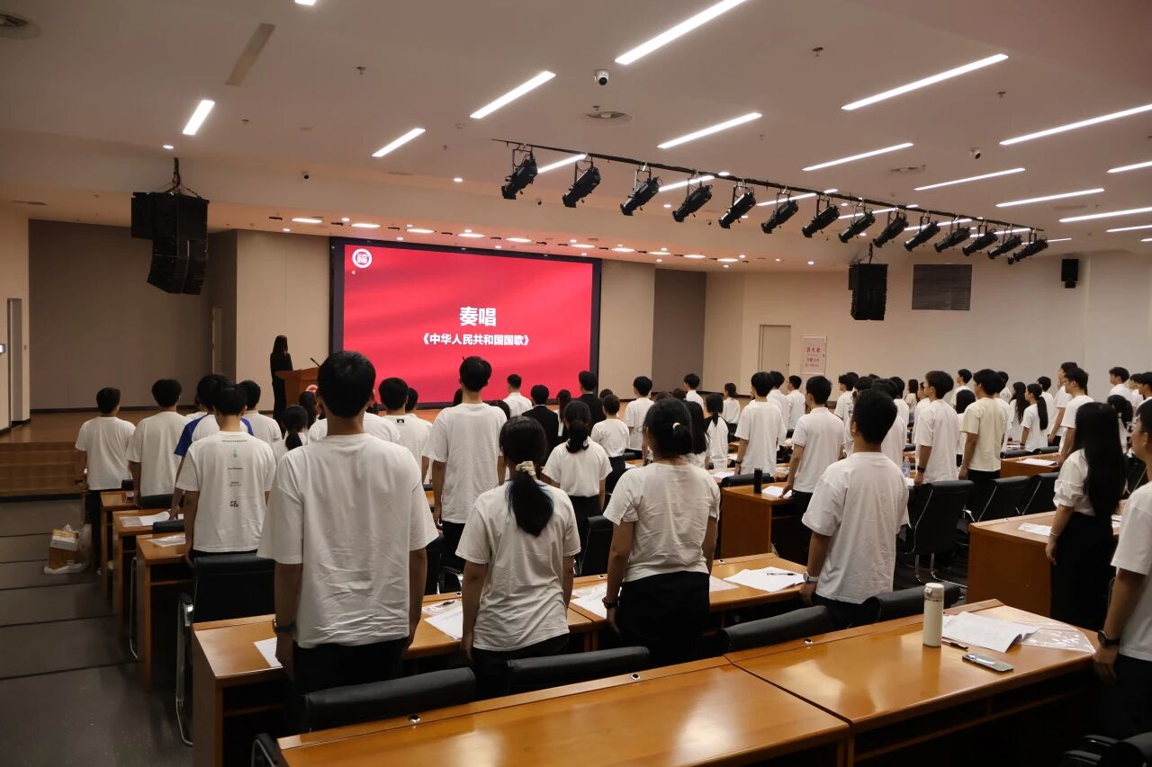 随着庄严的国歌声响起,大会正式拉开帷幕。全体代表起立齐唱国歌,爱国热情与青春力量在会场中激荡。