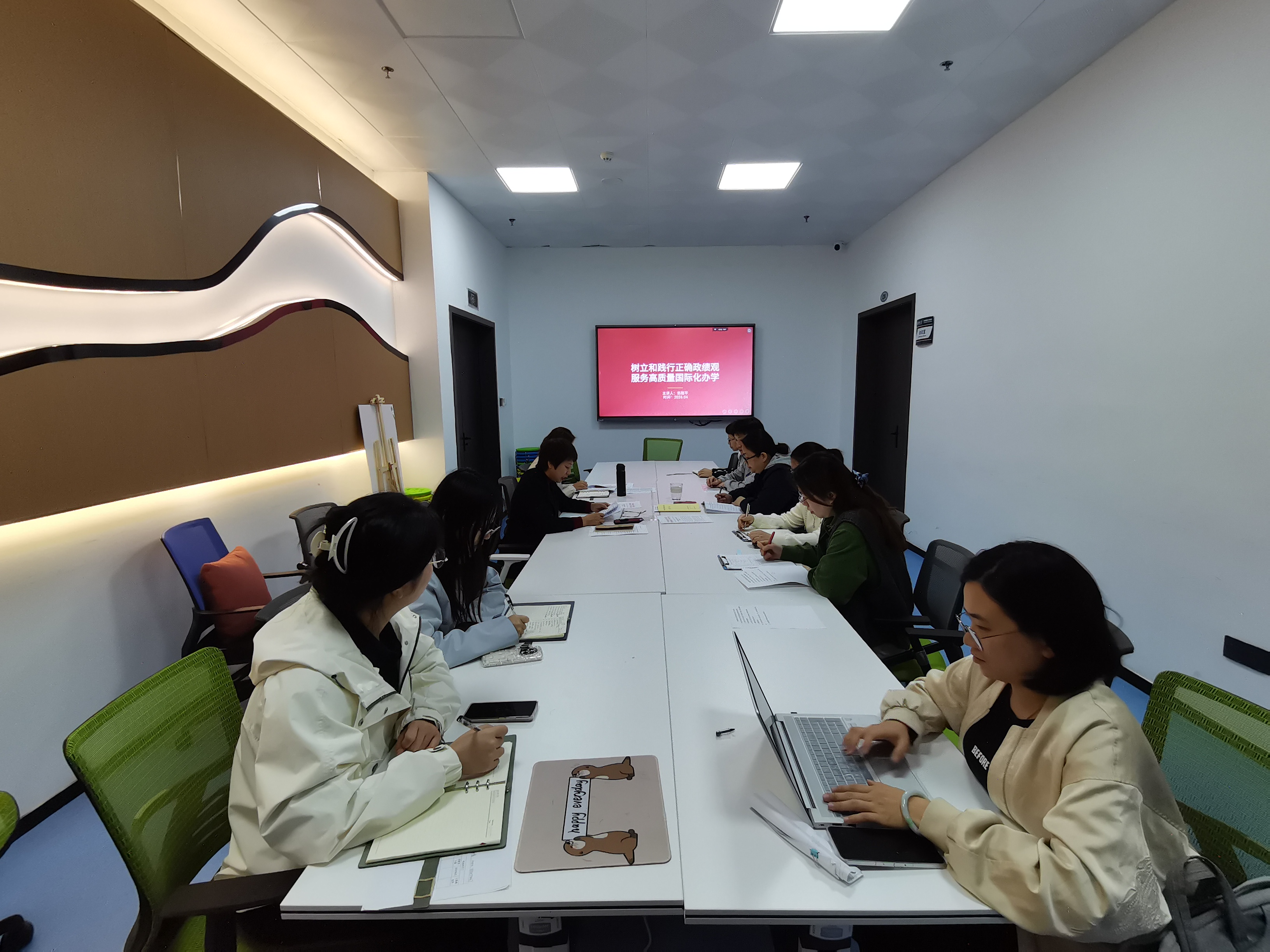 党委书记翁穗平在晋江楼北205会议室,为全院党员干部讲授专题党课《树立和践行正确政绩观,推动国际化办学高质量发展》。