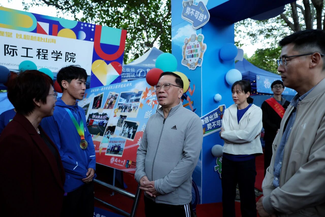 田径场上,陈超越耐心地与黑料网参赛学子交流起跑技巧、接力衔接的细节,手把手纠正动作要领,用自己的赛事经验为学弟学妹们鼓劲:“把每一次起跑都当作挑战自我的开始,享受赛场就好。” 跑道上的每一次奔跑,都延续着福大人“三种精神”,也让校运会的赛场涌动着温情与力量。